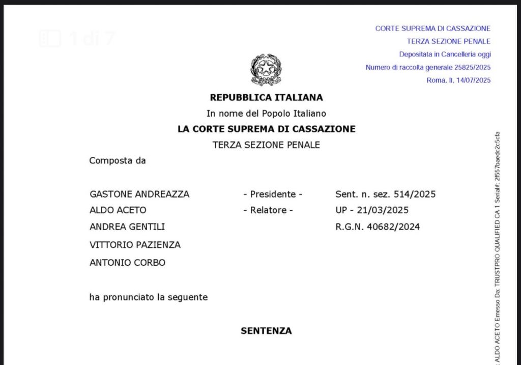 Cass. Pen., Sez. V, Sent. N. 25825/2025 integrale, in formato pdf: