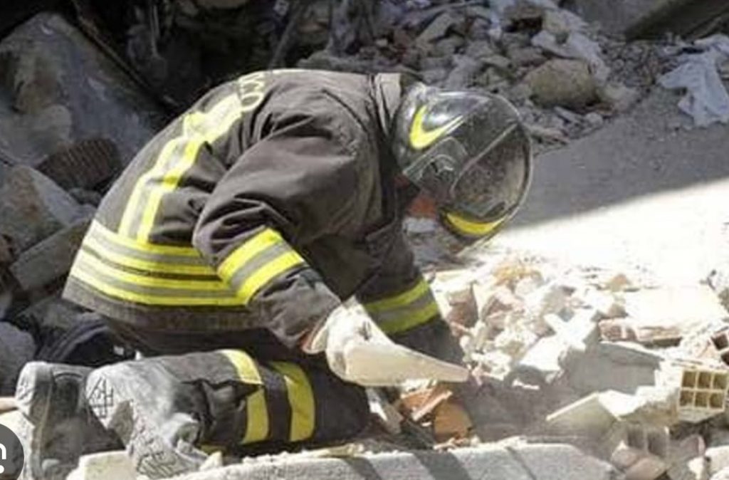 Vigile del Fuoco esposto all’amianto di un edificio crollato in un terremoto.