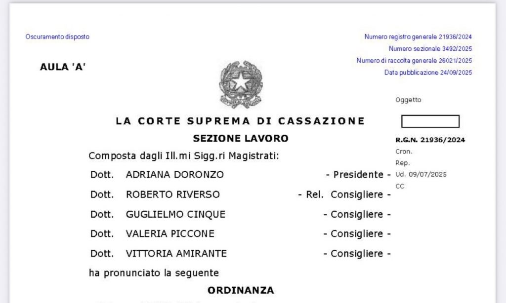 Cass. Civ., ordinanza n. n. 26021/2025 integrale, in formato pdf: