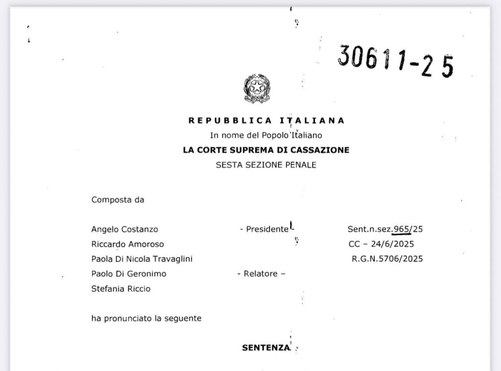 Cass. Pen., sentenza n. 30611/2025 integrale, in formato pdf: