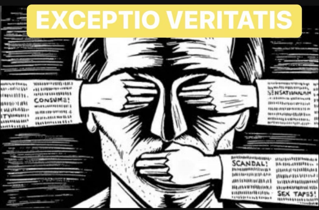 Exceptio veritatis è un’espressione di origine latina che indica l’eccezione di verità: la possibilità, per chi è accusato di aver offeso o diffamato qualcuno, di difendersi provando la verità del fatto attribuito.