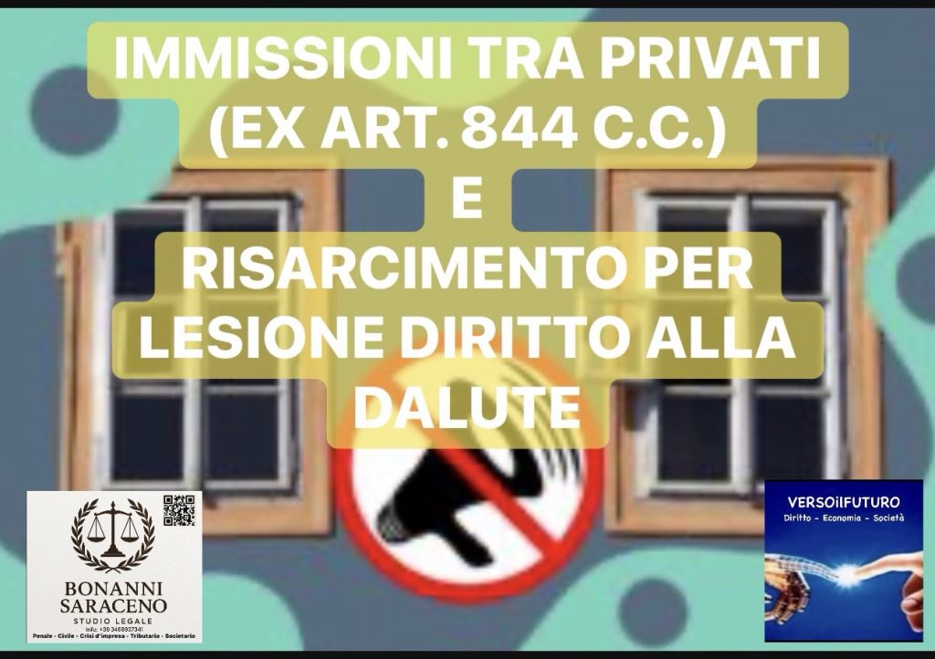 DIRITTO ALLA SALUTE: RISARCIMENTO DANNO NON PATRIMONIALE PER ILLECITE IMMISSIONI TRA PRIVATI (EX ART. 844 C.C.)